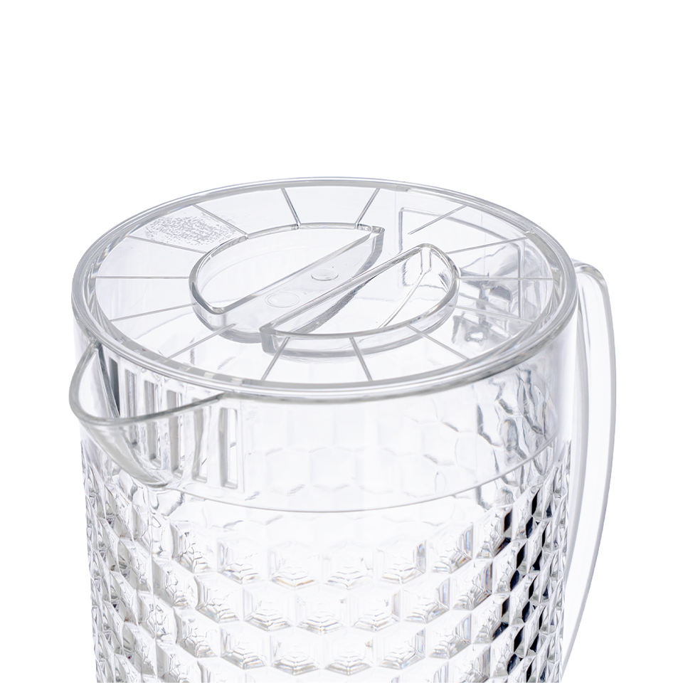 Hokori 6075 Honeycomb Water Pitcher 1900ml-Transparent Plastic Jug with Lid and Handle for Water Juice and Iced Tea