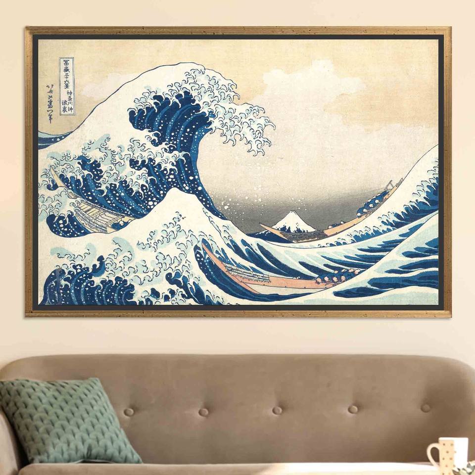 Hokusai Sea Landscape Canvas Print - Rough Sea Artwork,GOLD FRAMED CANVAS