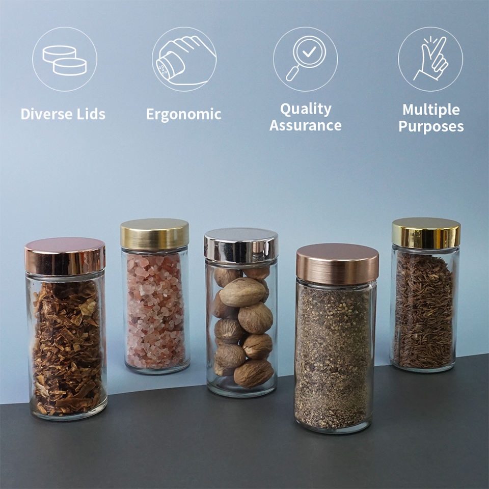 [Holar] Empty 3.5oz Round Glass Spice Jar Jars with Brushed Gold Lid