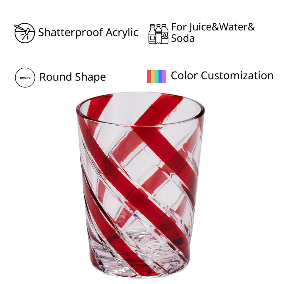 [Holar] Taiwan Made Shatterproof 14 Ounce High-Ball Glassware Clear Plastic Red Rhombus Low Ball Tumbler