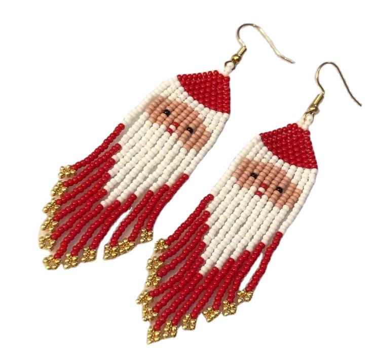 Holiday Gold Christmas Tree Beaded Earrings Christmas Tree Seed Beads Embroidery Earring Holiday Tree Gold Christmas Earrings