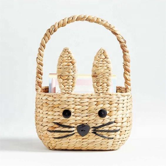 Holiday Product Water Hyacinth Bunny Basket Created with a Top Handle. Perfect for Easter. Water Hyacinth Easter Handmade