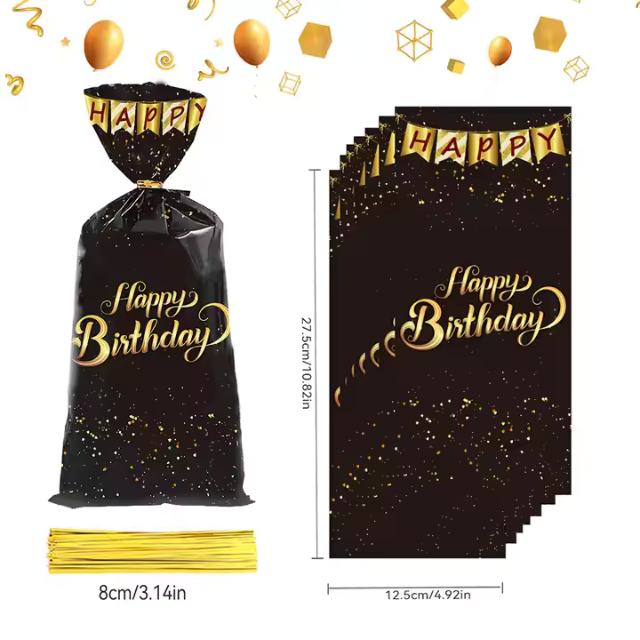 Holiday Series Happy Birthday Printed Opp Bag Drawstring Jelly Candy Wrapping Bag Waterproof Valentine's Day Christmas Birthdays