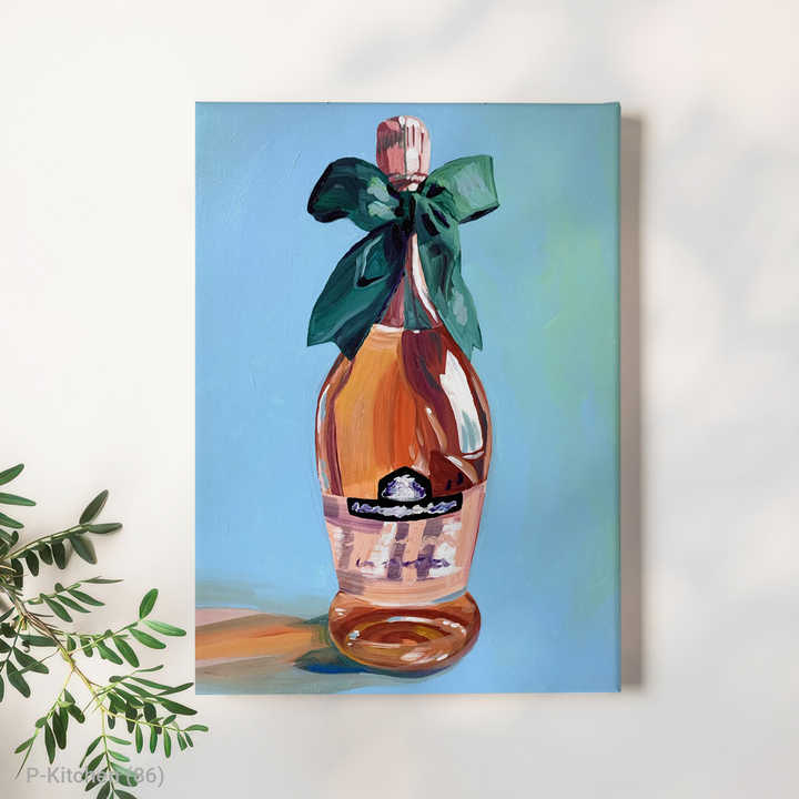 Holiday Wall Art, Decorative Bottle Still Life Illustration Artwork, Artistic Kitchen Wall Decor Canvas Print