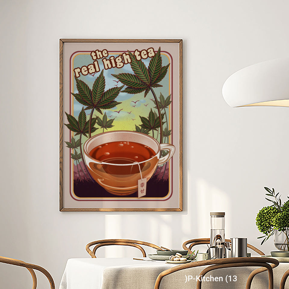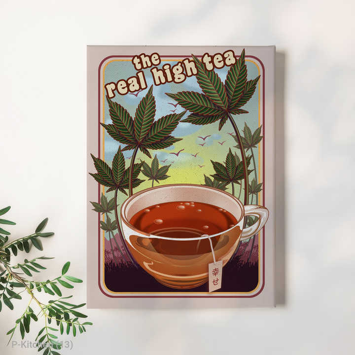 Holiday Wall Art Modern Vintage Tea Cup Botanical Illustration Poster Retro Kitchen Wall Decor Canvas Print with Wood Frame