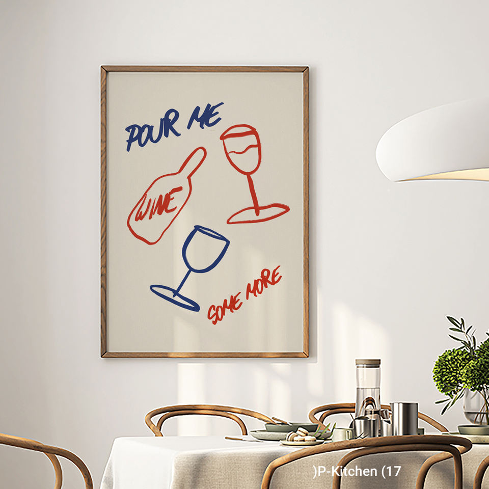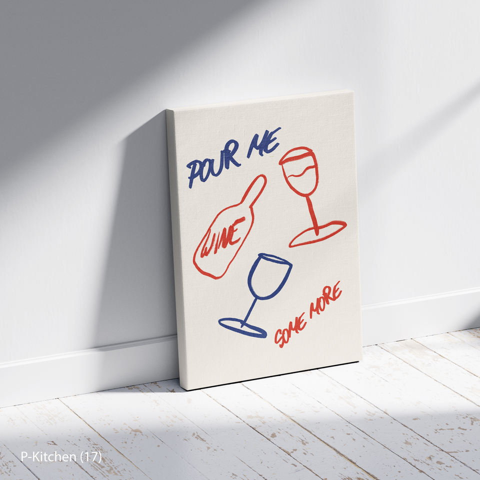 Holiday Wall Art, Wine Bottle and Glass Line Art Illustration Poster, Minimal Kitchen Wall Decor Canvas Print