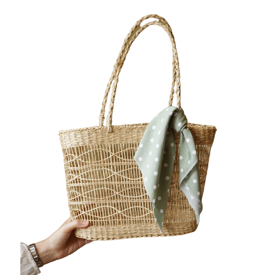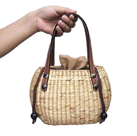 Holiday Beach Summer Handwoven Natural Seagrass Bag Top-handle Braided Woman Seagrass Handbag Flat Smooth Seagrass Handbag