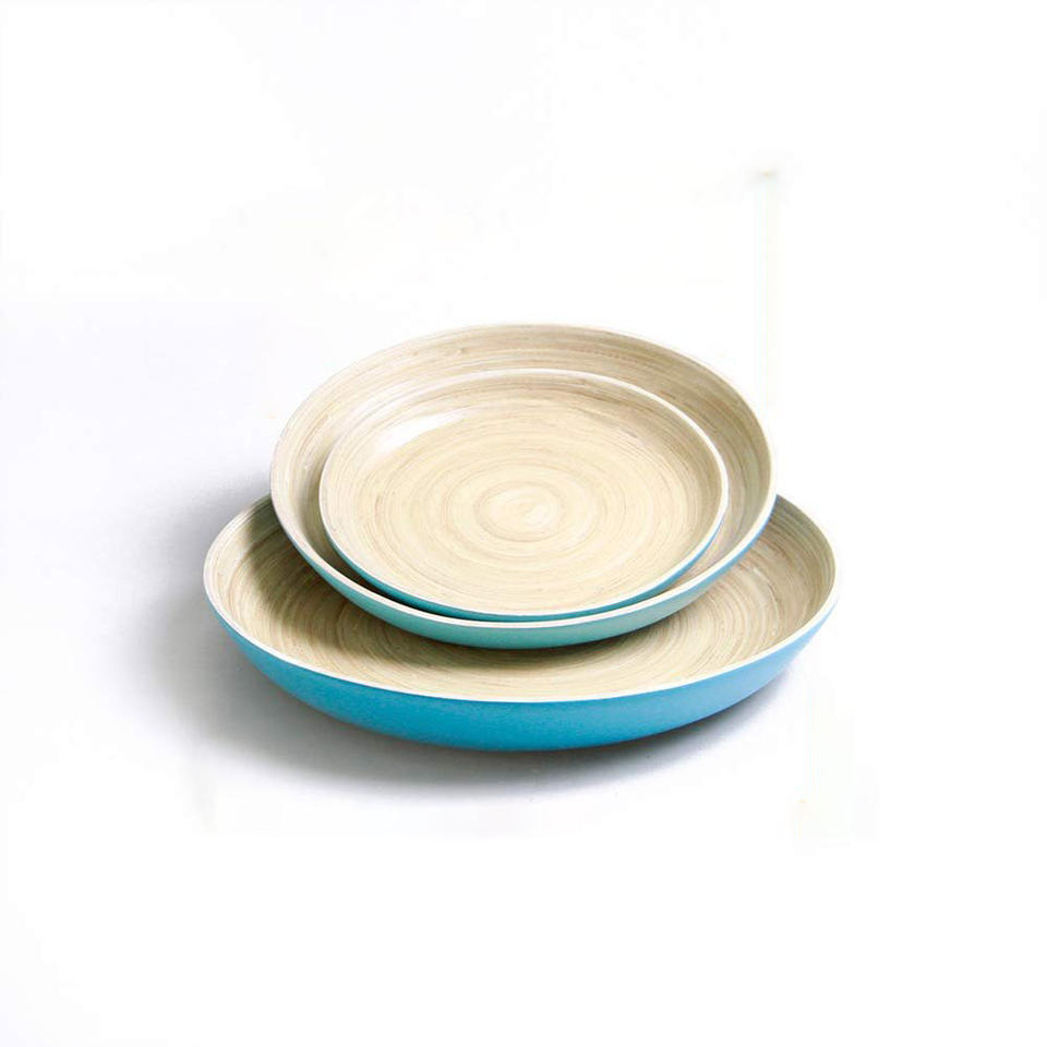 Holiday dinner serving tableware plate set best quality blue lacquer coiled bamboo dining plates for christmas feast