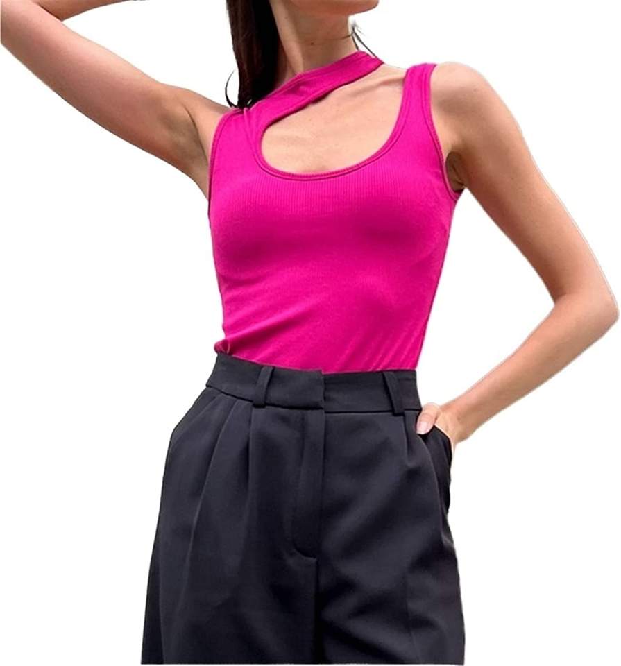 Hollow Out Short Plain Bandage Summer Halter Stylish Women Ladies Girls Fashion Tight Sleeveless Vest Clothes Pink Crop Tank Top
