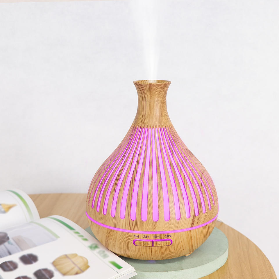 Hollowed Out Stripe Aroma Diffuser 400Ml Ultrasonic Wood Grain Humidifier With Led Light For Home And Office Use
