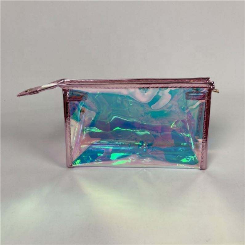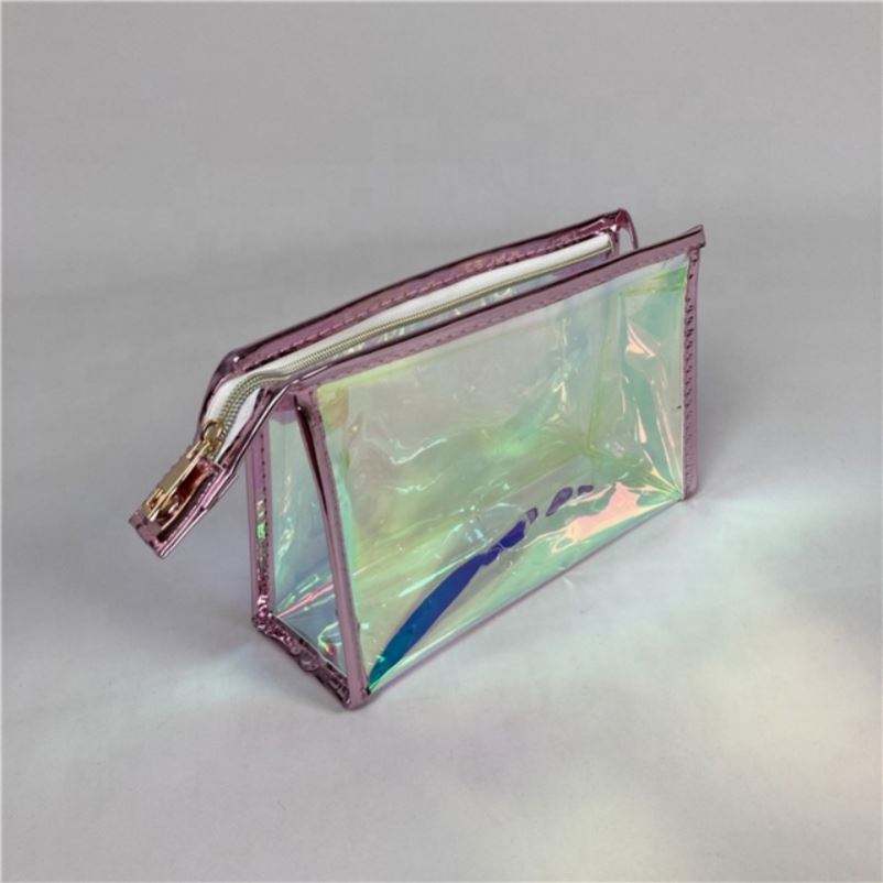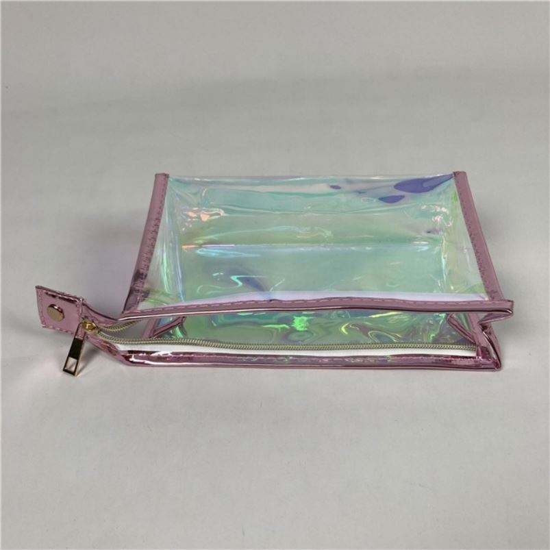 Hologram Cosmetic Bag Pvc Pink Clear Pvc Make up Bag Zipper Transparent Pvc Holographic Ziplock Bags Fashion