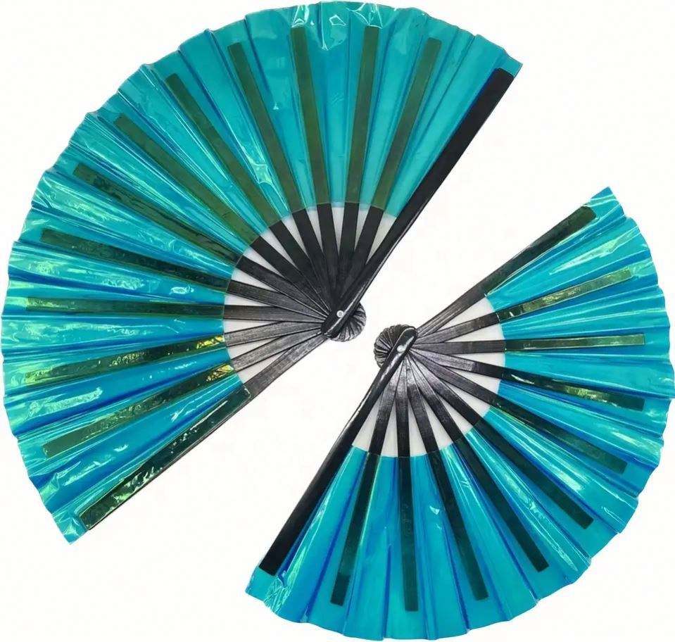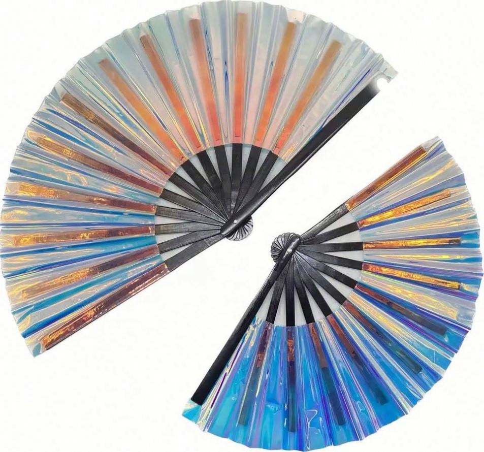 Holographic Painted Rave Bamboo Hand Fans for Women Large Folding Business Gift Fans for Festivals Pride Decor
