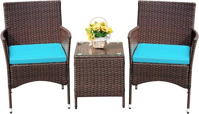 Homall 3 Piece Garden Rattan Seating Set with Table Factory Supply
