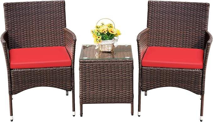Homall Outdoor Balcony Rattan Chair Table Set 3PCS for Residential Use