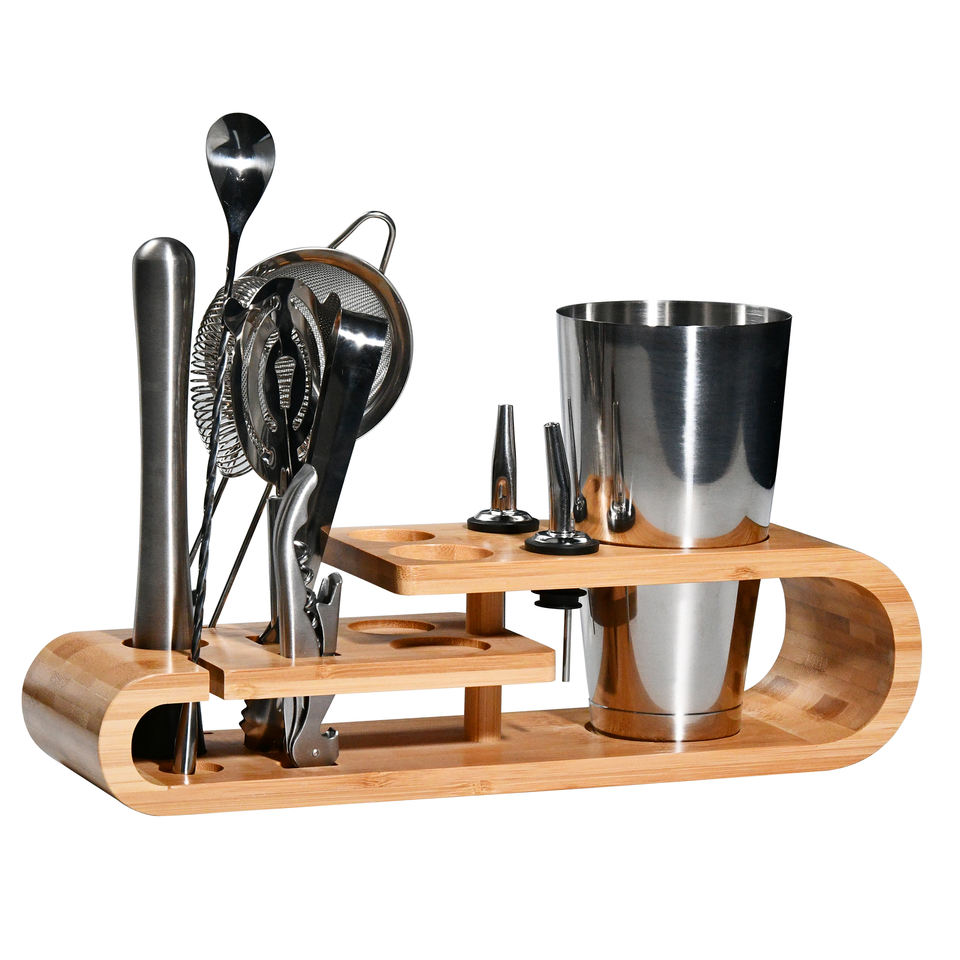 Home Alcohol Mixer Shaker Set Bar Accessories Bartender Kit Drink Shakers Cocktail with Bamboo Stand