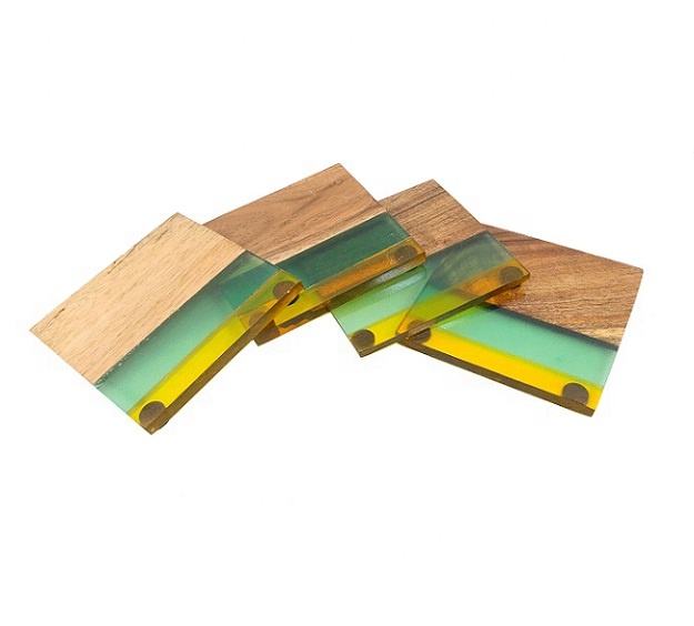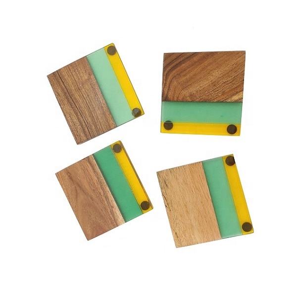 Home Bar Decoration Acacia Wood & Resin Eco-Friendly Square Coasters for Cup Customizable Vintage Table Accessories