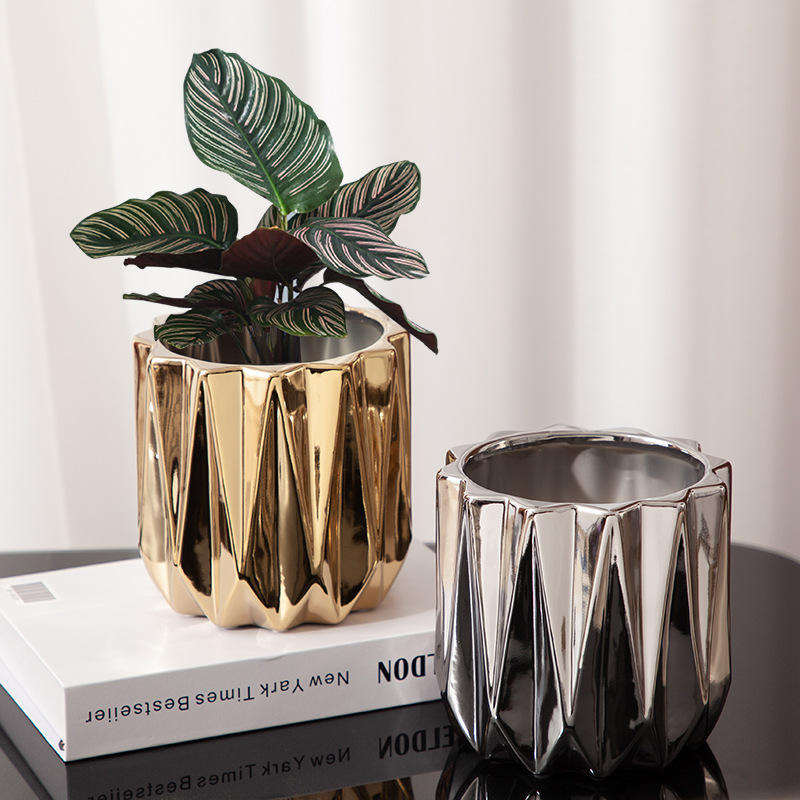 Home Bedroom Decor Flower Vase Nordic Style Planter Gold Plated Lacquered Modern Geometric Table Decorative Handmade Vases