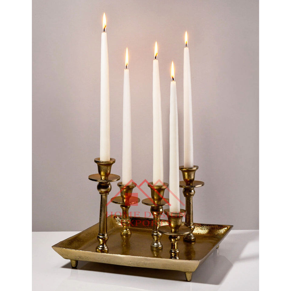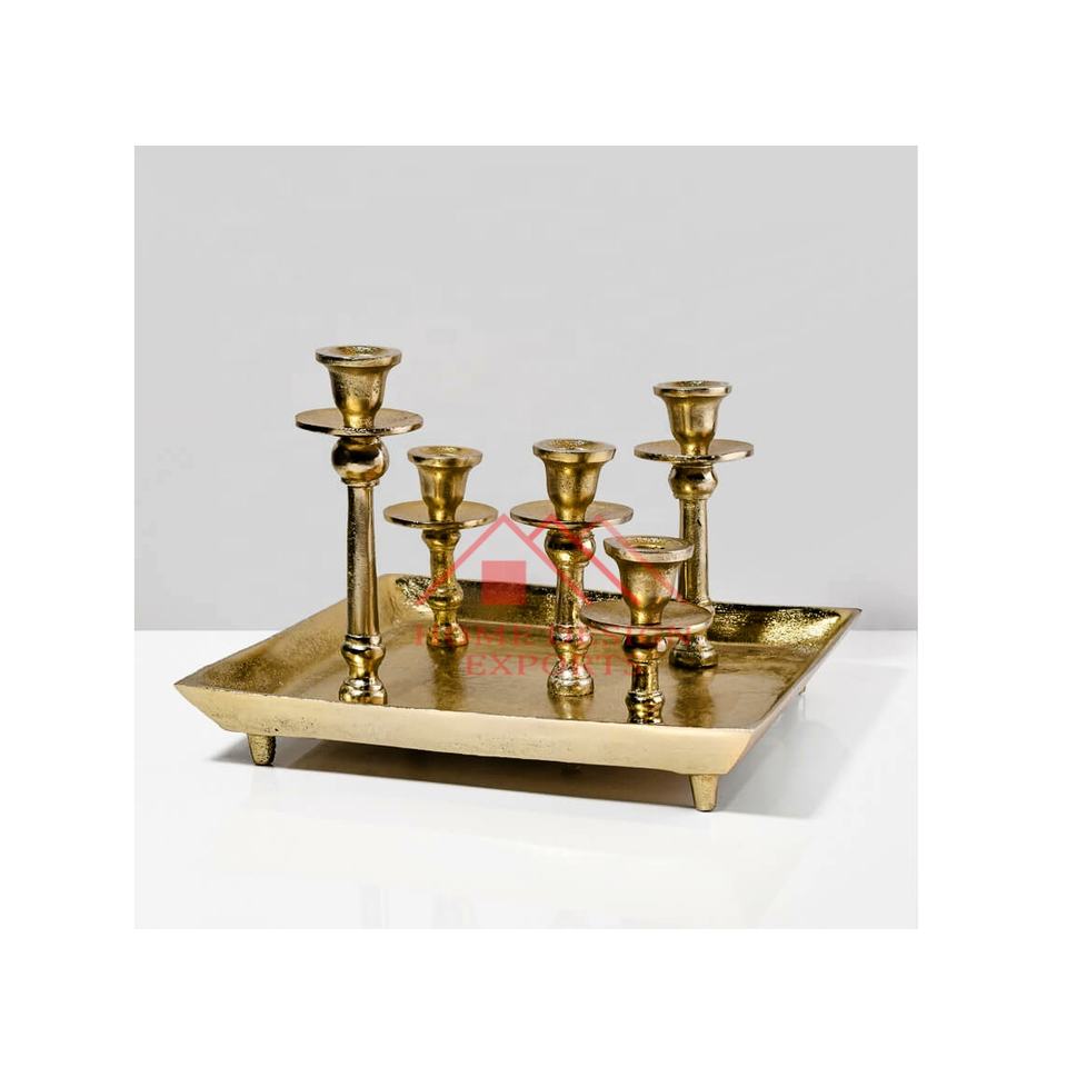 Home Decor Aluminium Table Centerpiece Unique Fancy Candelabra Tray Best Quality Christmas Decor T-Light Candlestick Holder