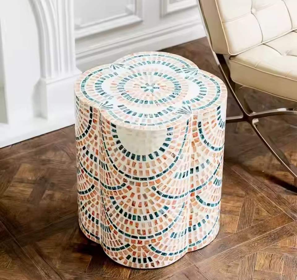 Home Decor Furniture Article Mother Of Pearl Based Wooden Stool With Unique and elegant design made in india