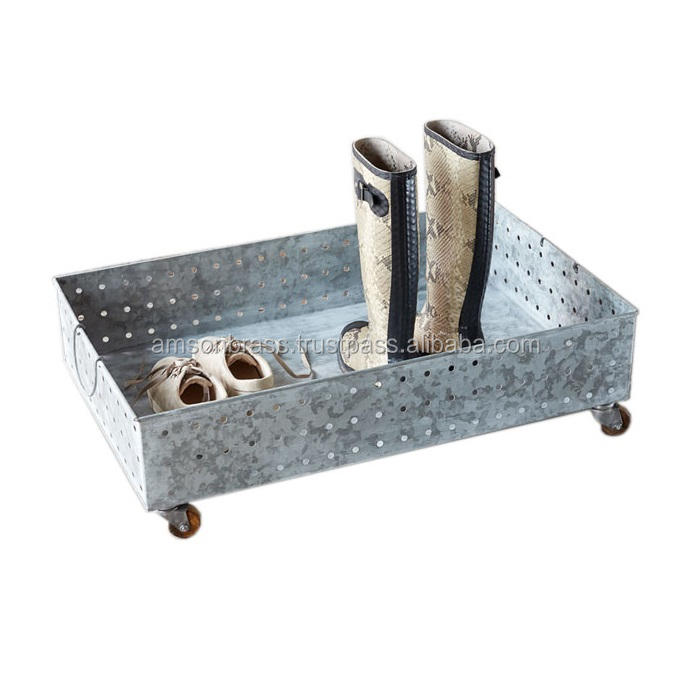 Home Decor Living Room Galvanized Entryway Boot Tray with Base Wheel Standard Shoe Rack Boot Tray Doorway
