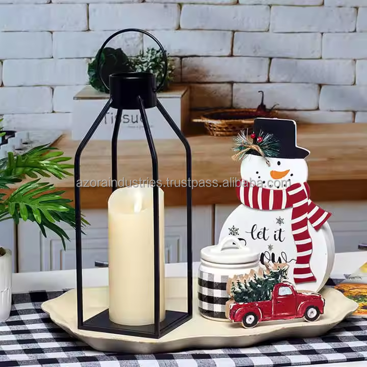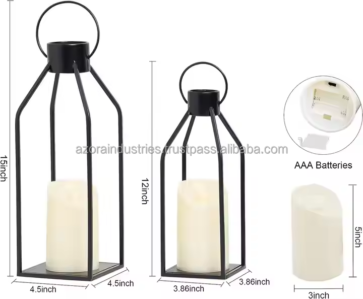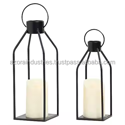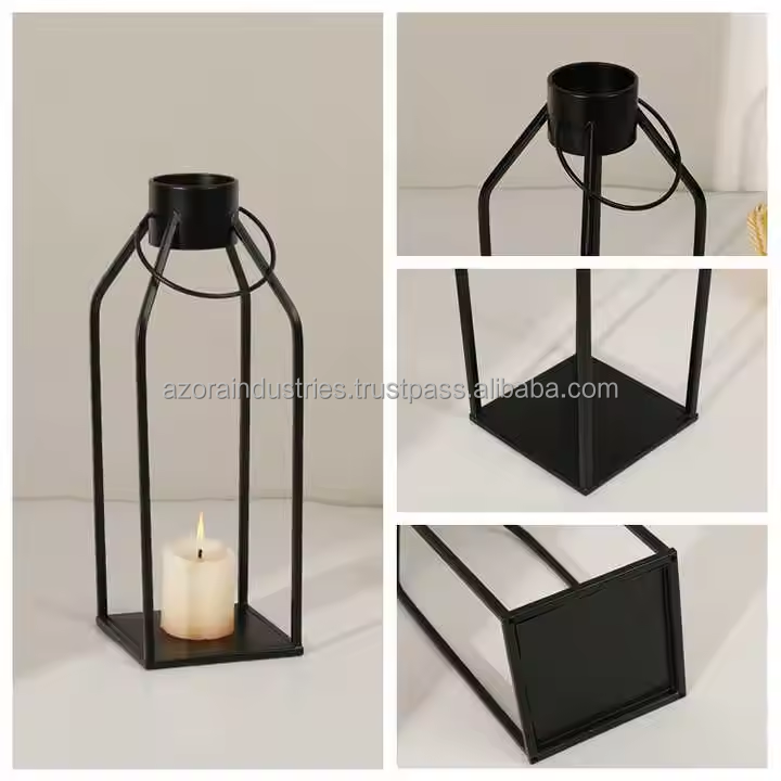 Home Decor Modern Eco-friendly Farmhouse Lantern Black Metal Candle Lanterns for Christmas Decorative