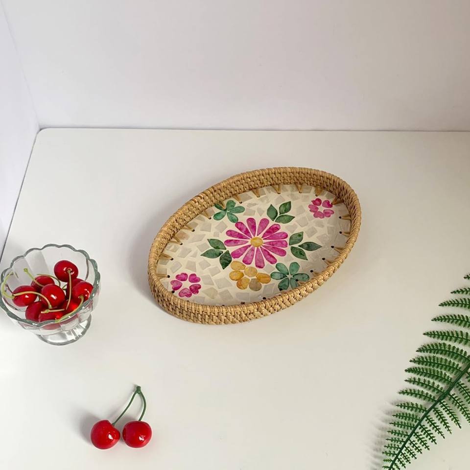 Rattan Combining Mother of Pearl Serving Tray made in Vietnam