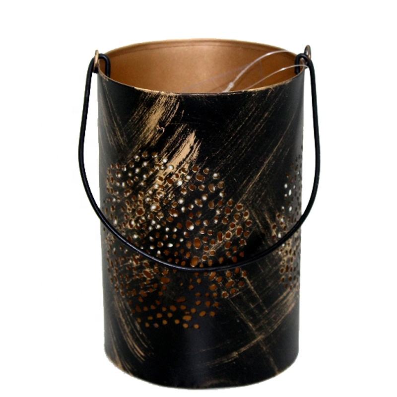 Home Decoration Iron Round Shaped Lantern Indian Black With Gold Wash Finished Modern Design Candle Stand