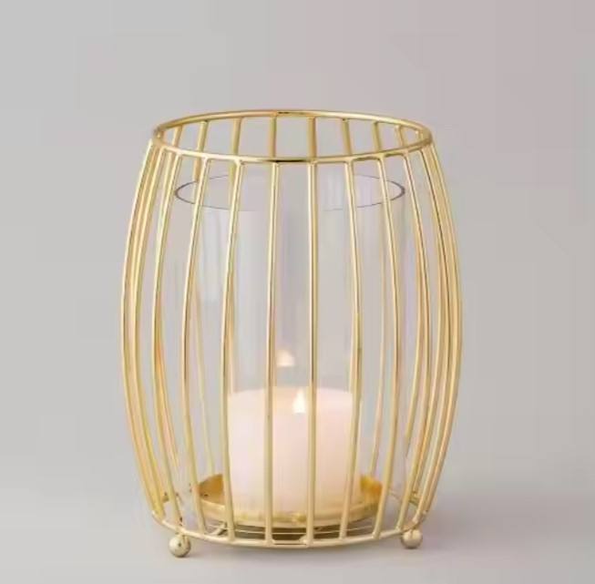 Home Decoration Wedding and Party Use Candle Holder Tealight Lantern Metal Wire With Handle Golden Candle Lantern Holder