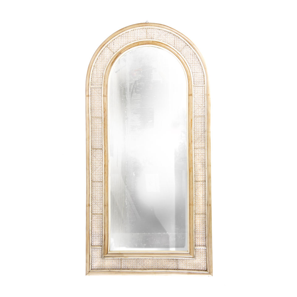 Home Decoration and Furniture Standing Mirror Semi Rectangle Shaped Decor Mirror Rattan Cane Framed and Rattan Webbing Weaving