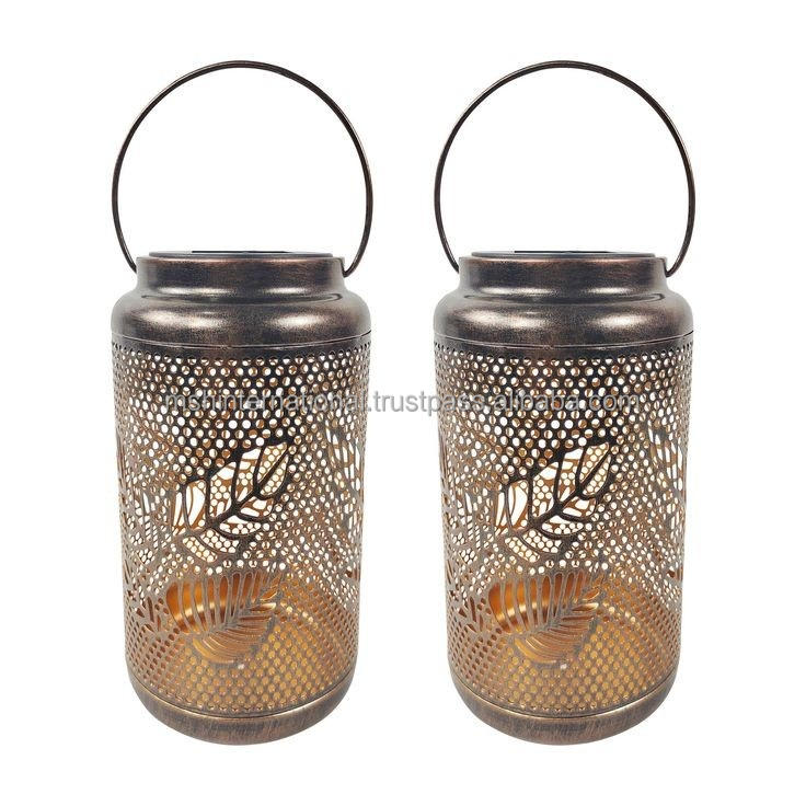Home Decorative Antique Metal Classical Candle Lantern Windproof Large Small Size Black Metal Glass Candle Lantern