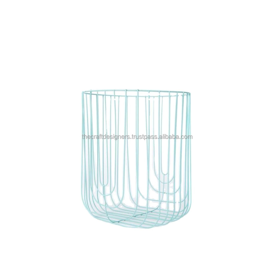 Home Decorative Blue Coated Iron Wire Basket Multifunctional Storage Household Beverage Collectable Large Basket Newest by TCD