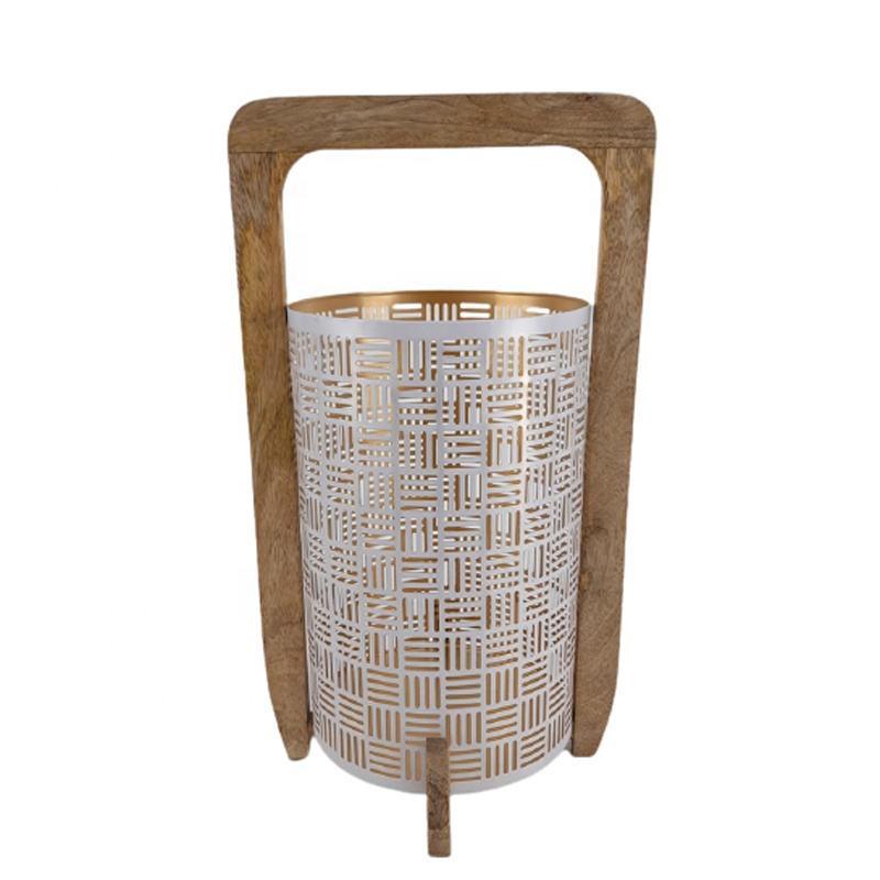 Home Decorative Fabulous Design Iron And Wood Luxury Candle Holder Matt White Powder Coated Finishing For Home Decor
