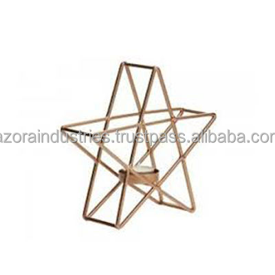 Home Decorative Geometric Candle Holder Gold Wire Iron Candle Lantern Holder
