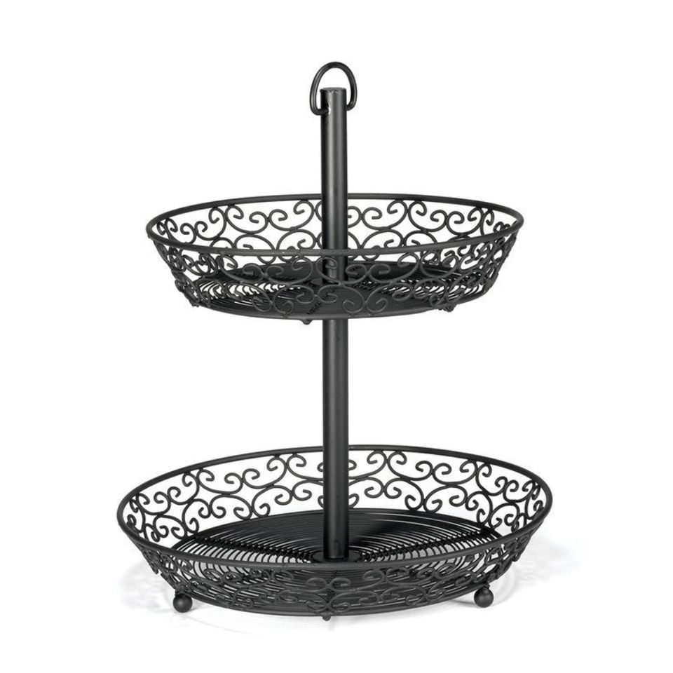 Home Decorative Iron Wire Fruits Baskets With Handle Round Shape Bronze Finished Large 3 Tier Tabletop Storage Basket
