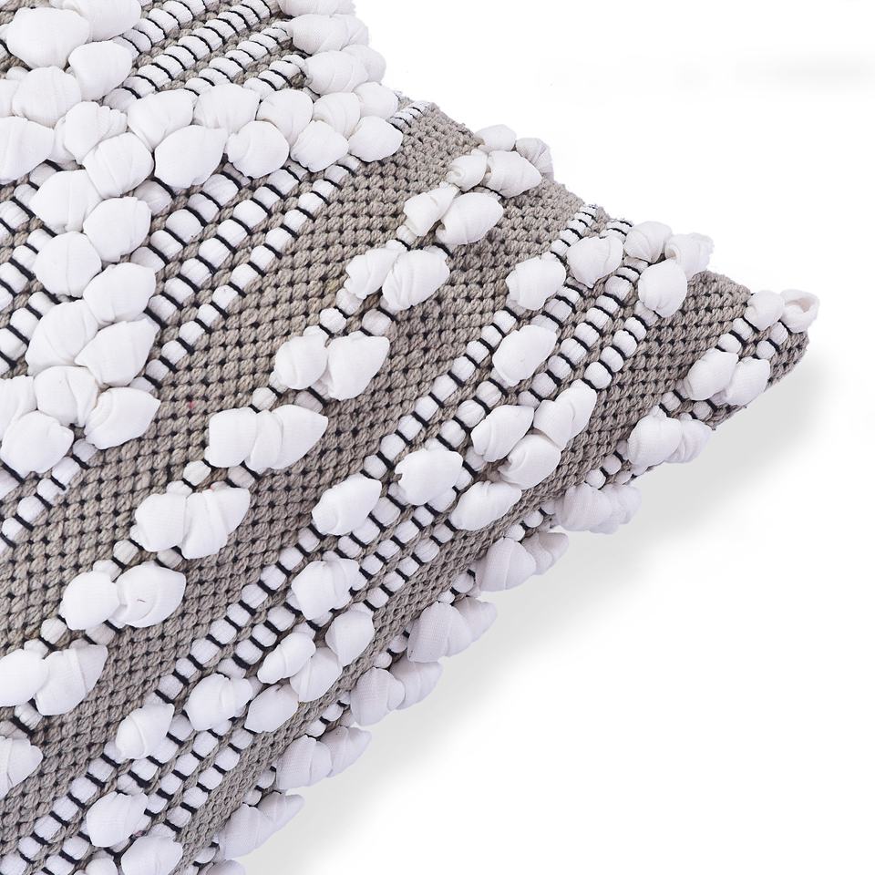 Home Decorative Woven Pillow Cover Bohemian Cotton Pillow Case with White tufts at best price 18 X 18 White Cushion Cover