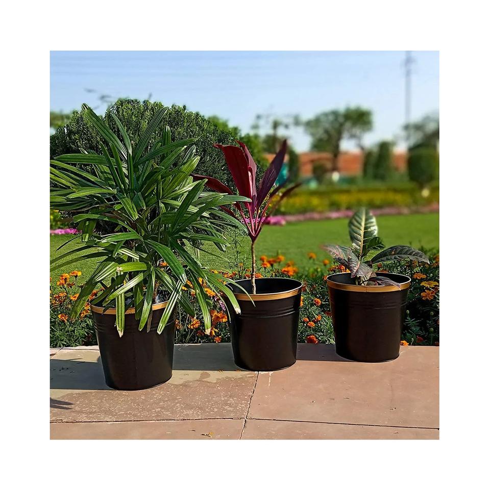 Home Desktop Organizer Plants Pot Black and Golden Bordered Metal Planters With Stand Hot Selling Home Living Room Office Use