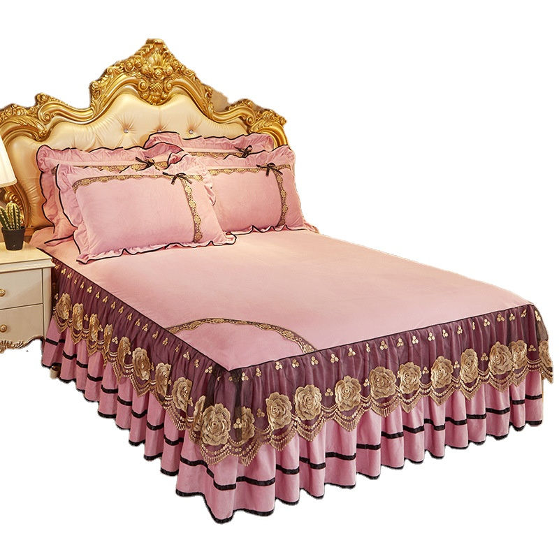 Home Embroidery Lace European Cotton 3pcs Bed Spreads Bedding Bedspread Bed Skirt for Home and Hotels Quilts for Bedding