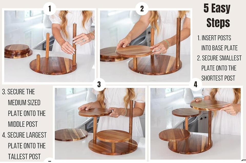 Home Essential Three Tier Wooden Cupcake Stand for 50 Cupcakes Wood Farmhouse Cupcake Tier Stand Tower for Dessert Food &