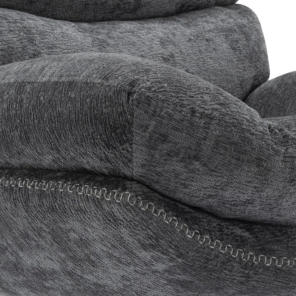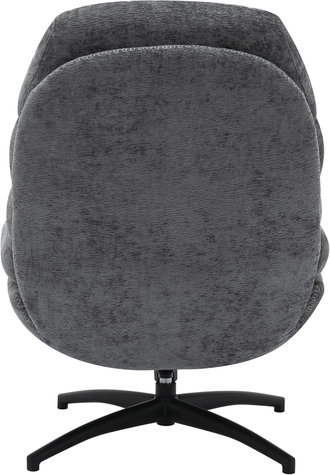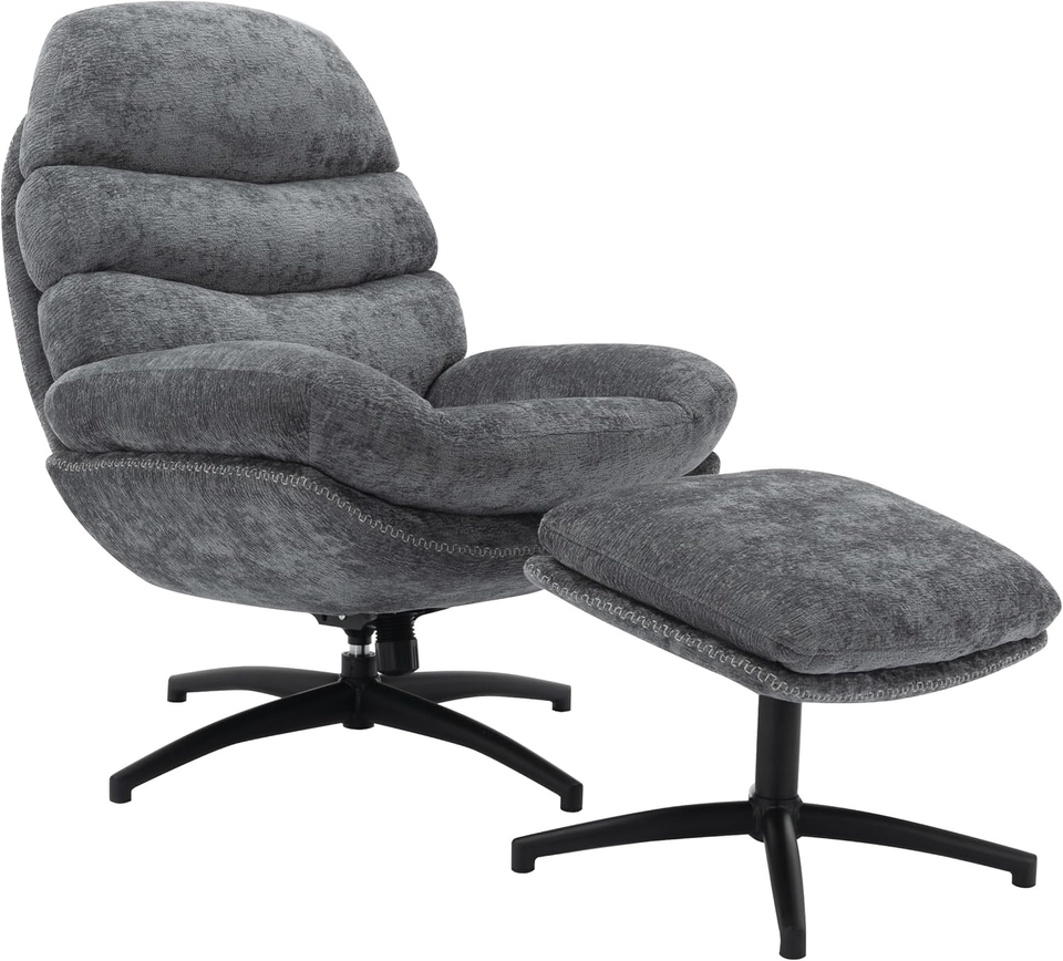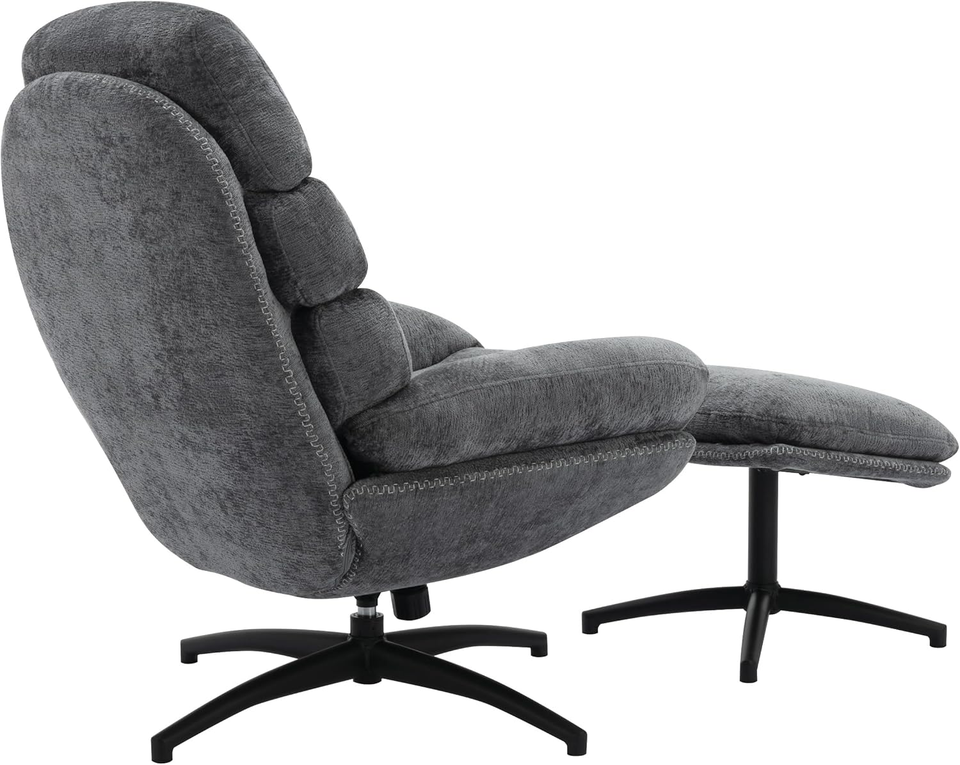 Home Furnishings Kerry Modern Plush Swivel and Rocking Lounge Chair and Foot Rest with Black Base, Grey Fabric