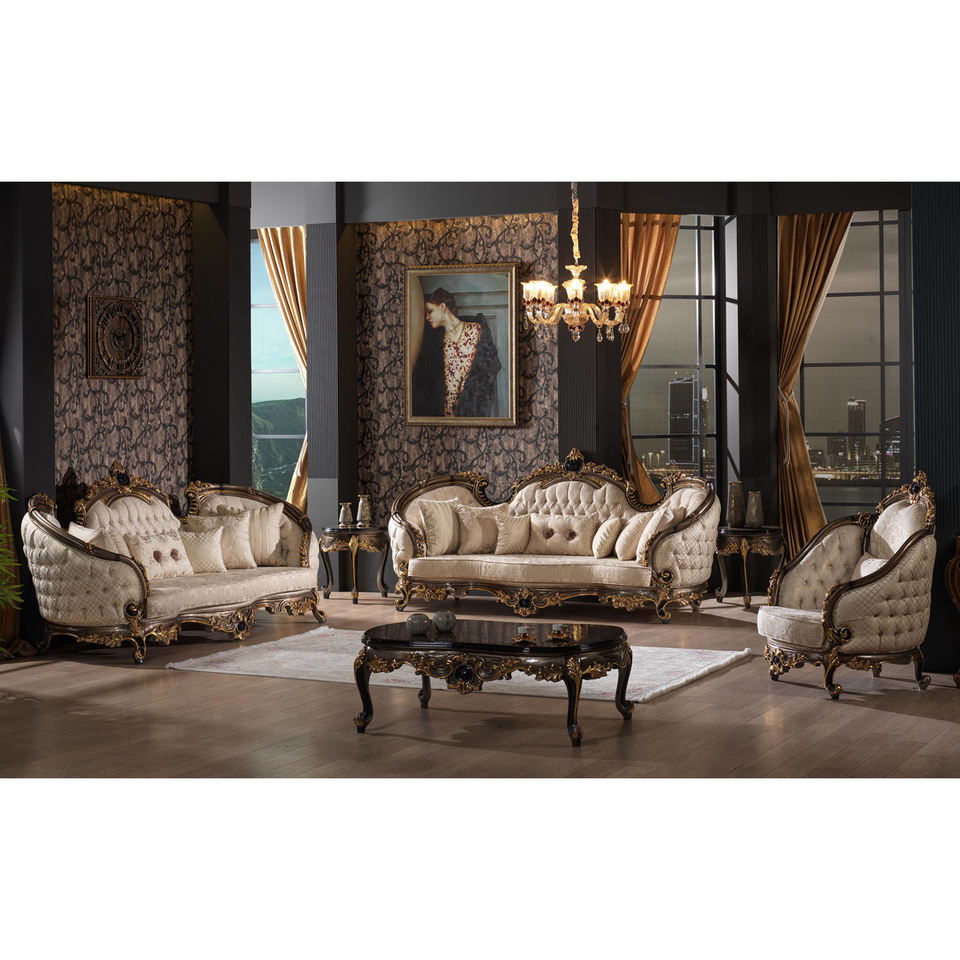 Home Furniture Living Room Ocher Velvet Sofa Loveseat Couch Luxury 3 Seater Sofa Royal Turkish Design Home Sofa Furniture