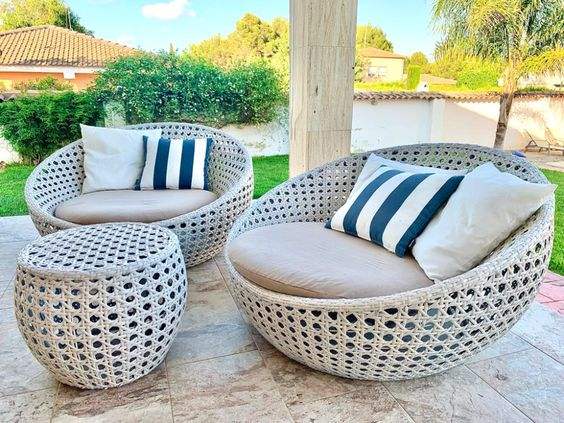 Home Furniture - Swimming Pool Furniture Woven Rattan Sun Bed Garden Round Double Seat Outdoor Daybed