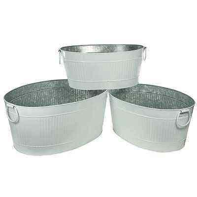 Home Garden Decorative Flower Pots & Planter Oval Shape Planter Metal Green Galvanized Planter Tub with Handle
