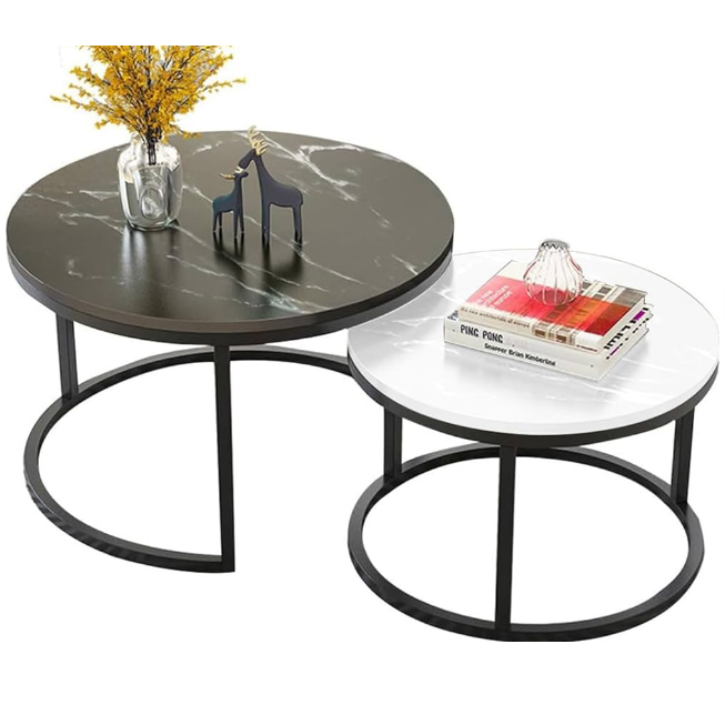 Home Garden Furniture White & Black Rounded Marble Top New Style Indoor Metal Nesting Table for Living Room