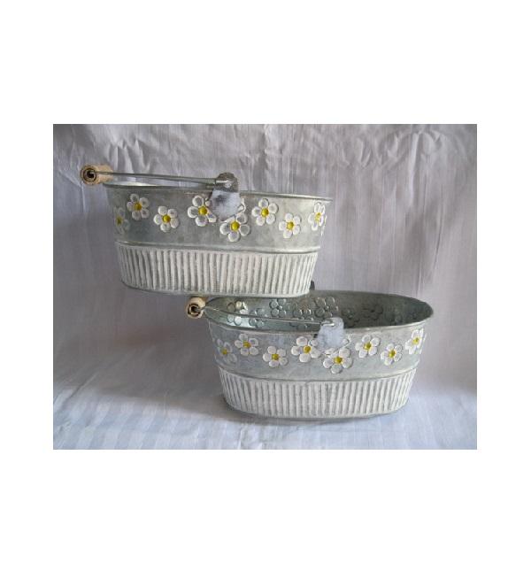 Galvanized Iron Round Planter With Handles Acid Finishing