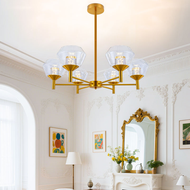 Home Glass Pendant Lights brass color Iron Body Chandeliers Lights 5 arm Indoor Hanging Lamps Bedroom Suspension Lamps