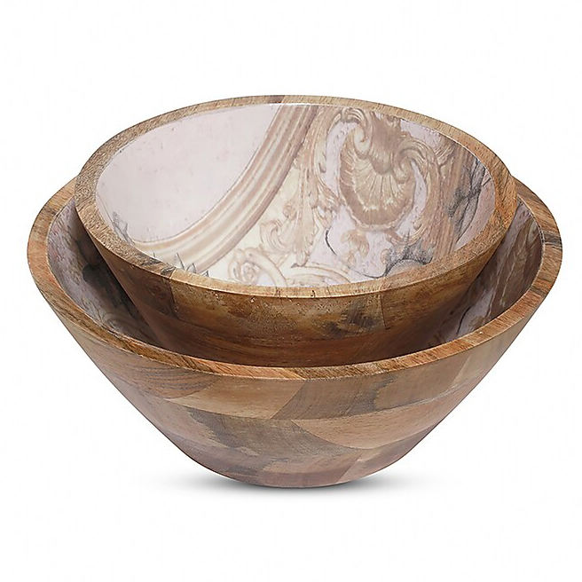 Home Hotels & Restaurants Handmade Mango Wood Salad Bowl Dinner Table Mango Wood Enamel Printed Serving Salad Bowl