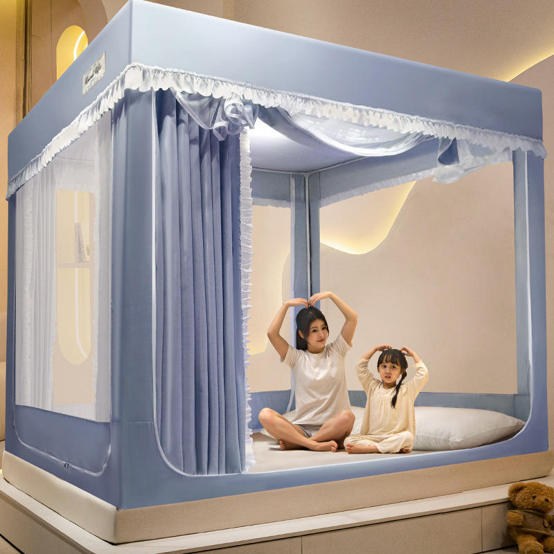 Home Integrated Portable Polyester Solid King Queen Size Bedroom Blackout Cloth Mosquito Protection Canopy Mosquito Net