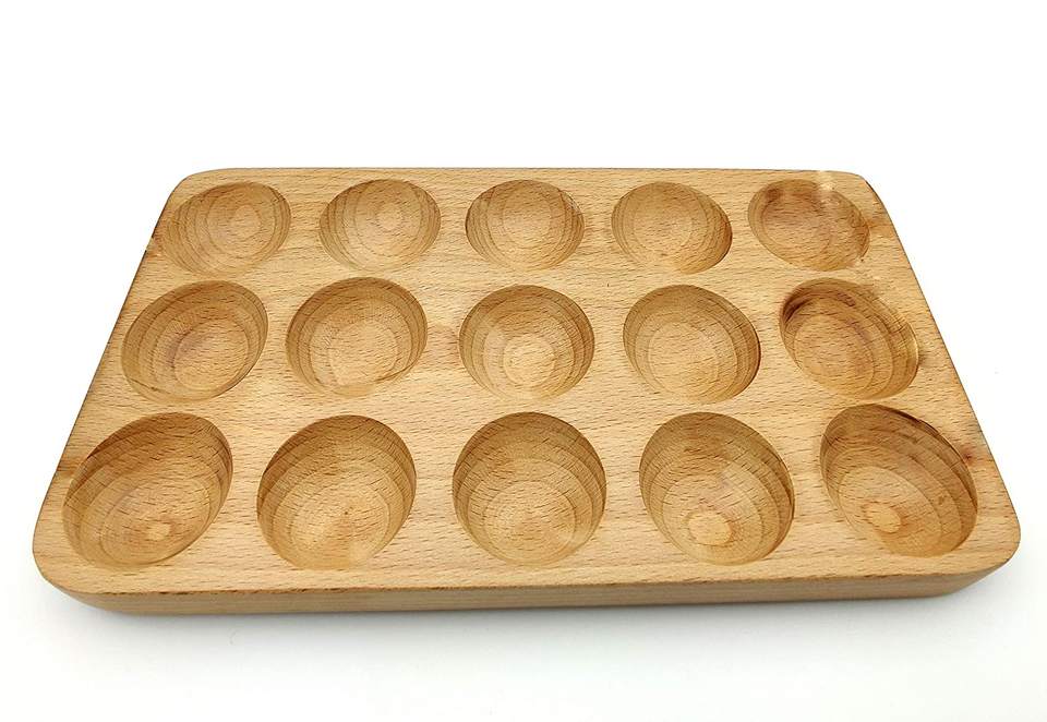 Home Kitchen Counter Top Refrigerator Egg Holder for Storing and Displaying Chicken Eggs Made of Ceramic Metal and Wood