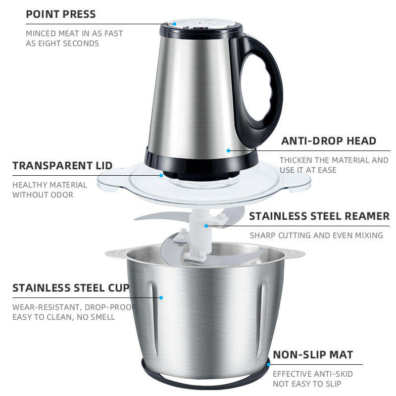 2L Stainless Steel Meat Grinder Electric Chopper meatgrinder stainlesssteel electricchopper durable powerful kitchen efficient 2