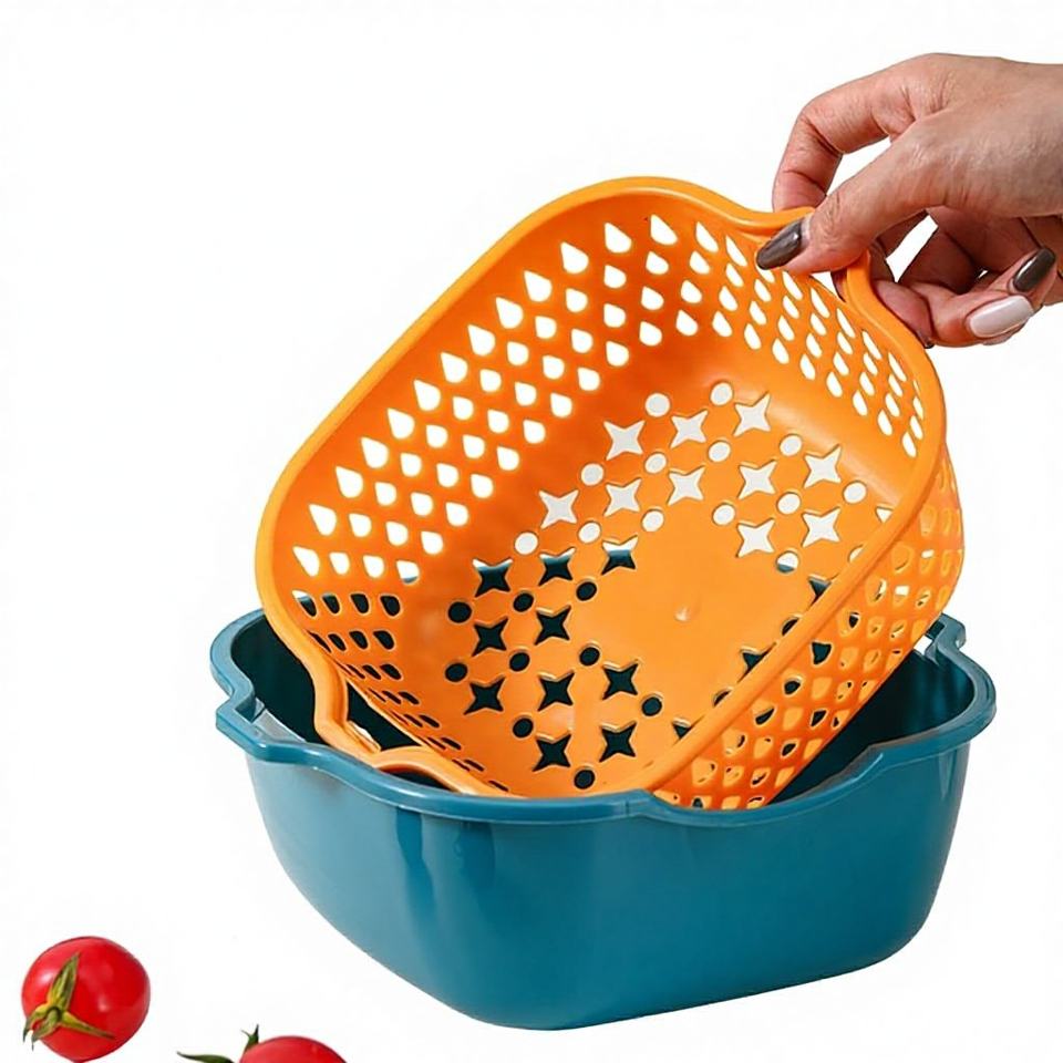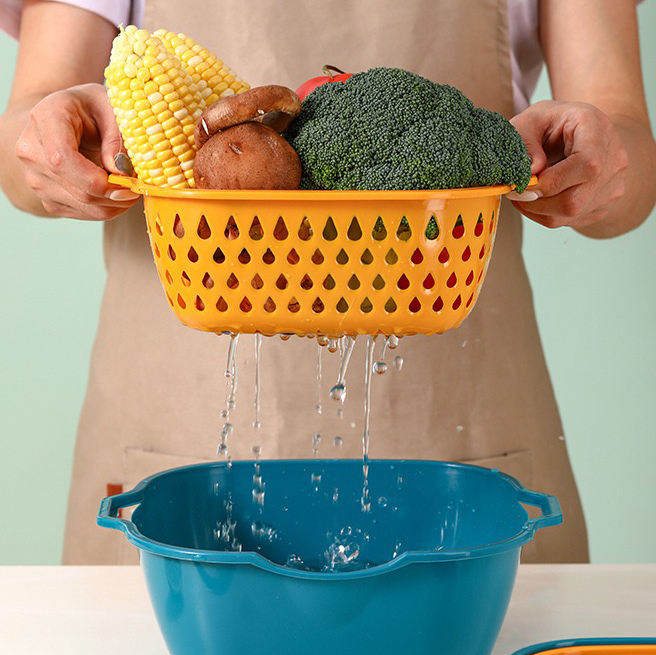 Home Kitchen Multi-Function 2-in-1 Vegetable Washer Dryer Double-Layer Plastic Eco-Friendly Foldable Dishwasher Safe Washing